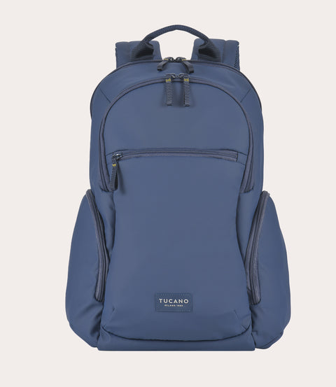Doppelkammer-Rucksack aus beschichtetem Gewebe, das aus recyceltem Kunststoff hergestellt wird. Das Innenfach für den Laptop ist mit einem Antischock-System ausgestattet und bietet so einen gezielten und effektiven Schutz. Die beiden Taschen auf der Vorderseite, zusammen mit den Seitentaschen und der Sicherheitstasche auf der Rückseite, sorgen für eine optimale Organisation. Ausgestattet mit einem Trolley-Befestigungsband und einem Innenfach für AirTag.