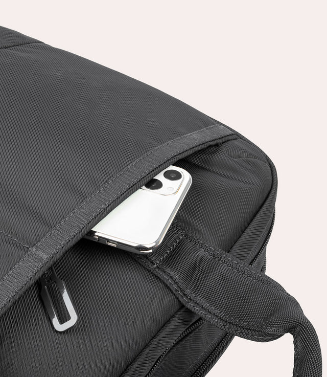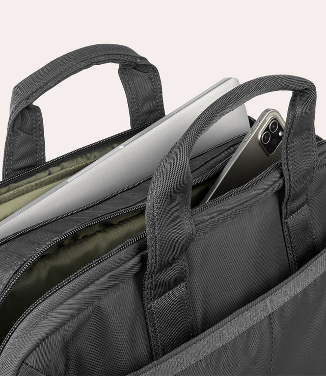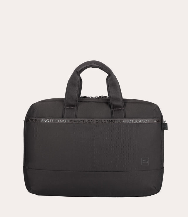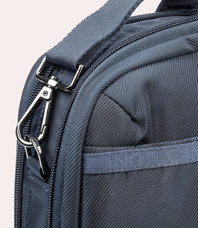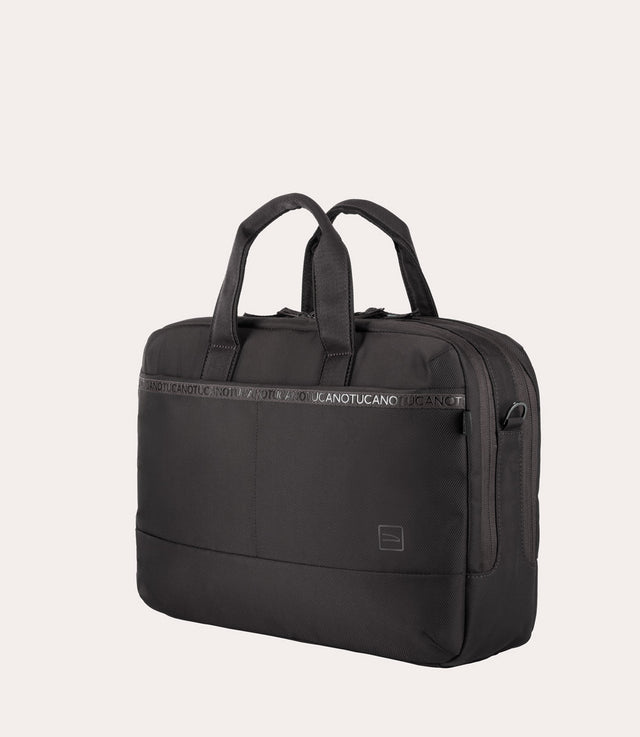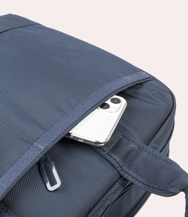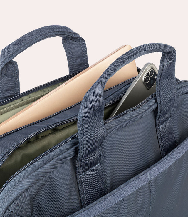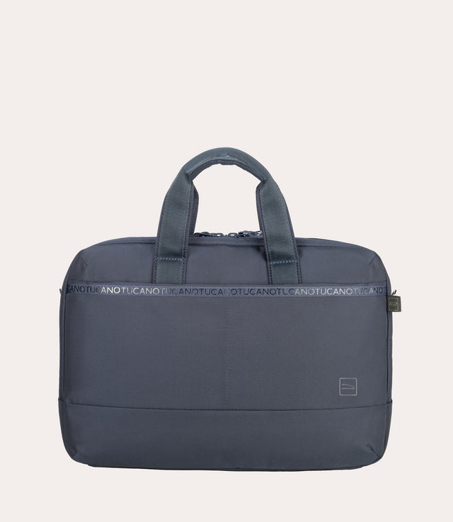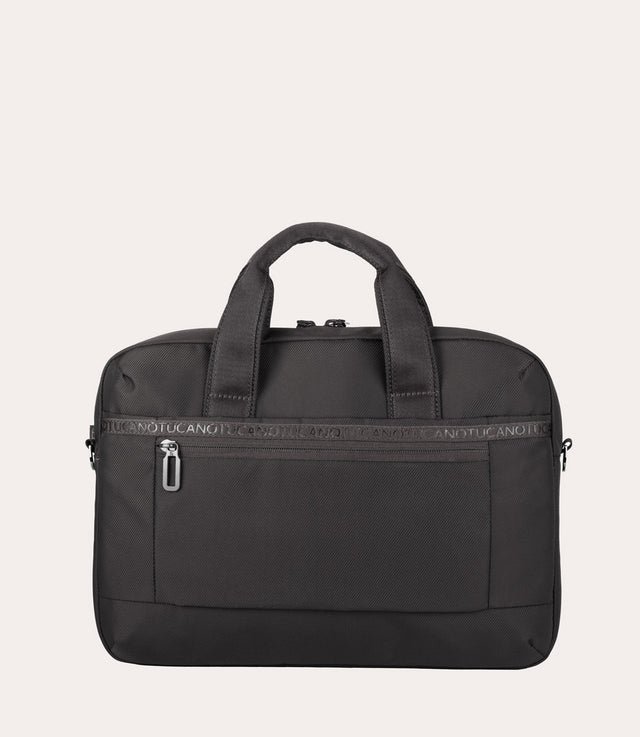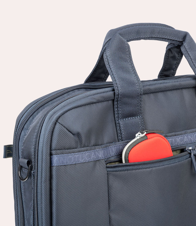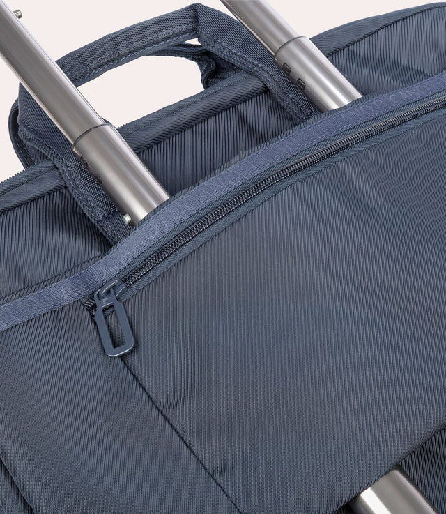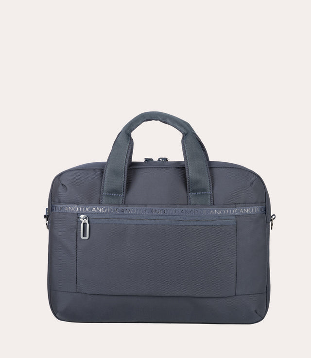 Bag made of twill fabric produced from recycled plastic and featuring cords with an all-over pattern. Large, lightweight and roomy, the Astra bag features perfect pocket organization and has two practical internal compartments separated and featuring zip closures, one of which is designed to accommodate laptops up to 15.6” or MacBook Pro 16". The back also features an exterior pocket that can function as a trolley strap. The shoulder strap is adjustable and detachable.