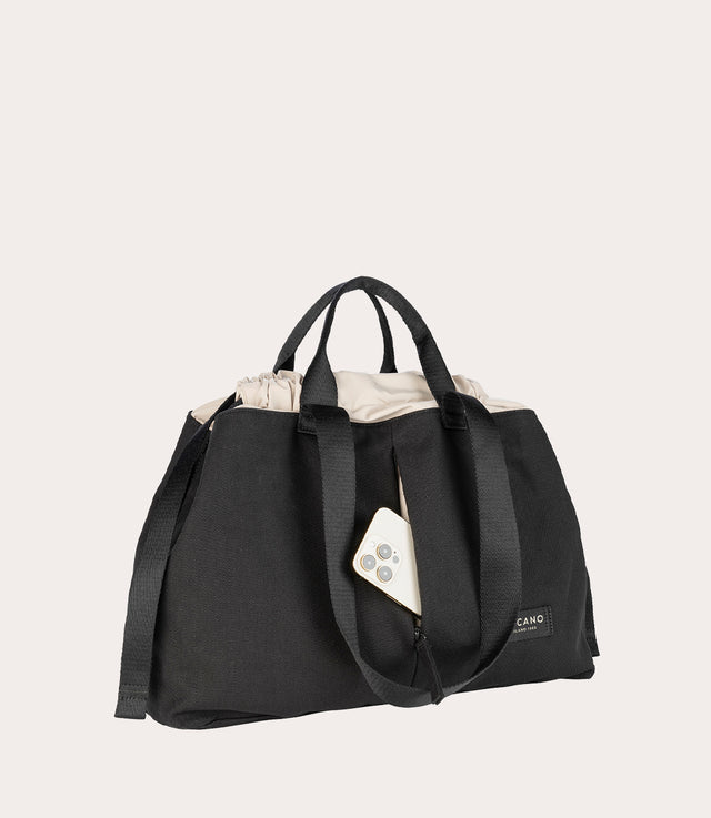 Roomy shopper made of cotton canvas with double webbing handles and a drawstring closure. The inner lining is made of fabric produced from recycled plastic. With a capacity of 21 liters, this tote bag offers ample space to meet your needs for quick, spontaneous trips. Equipped with a convenient inside pocket and a roomy outside pocket, the Carry bag also comes with a removable inner pouch.
