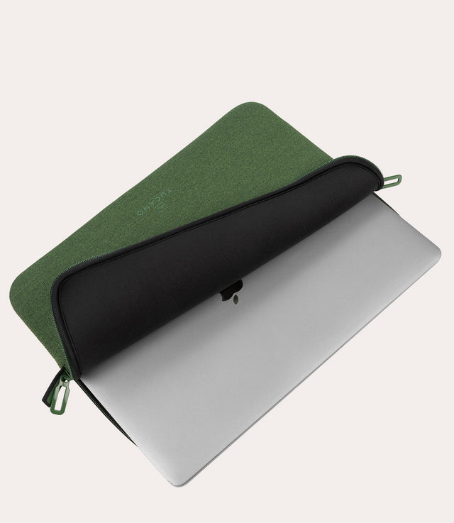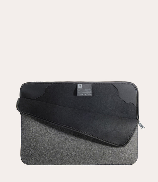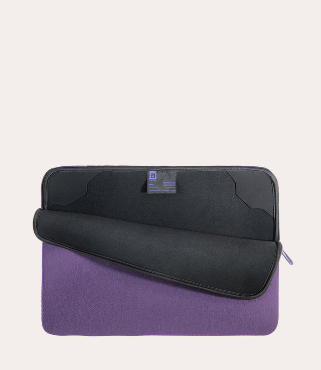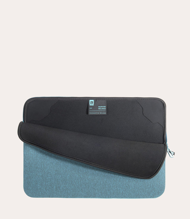 Stretchy case in neoprene with a mélange effect, for laptop and MacBook. Equipped with Anti-Slip System® and two angular flaps designed to secure the device, the Second Skin® mélange also fits snugly thanks to its flat-lock stitching. This guarantees a thinner profile and excellent protection. The interior is made with a soft, anti-scratch material.