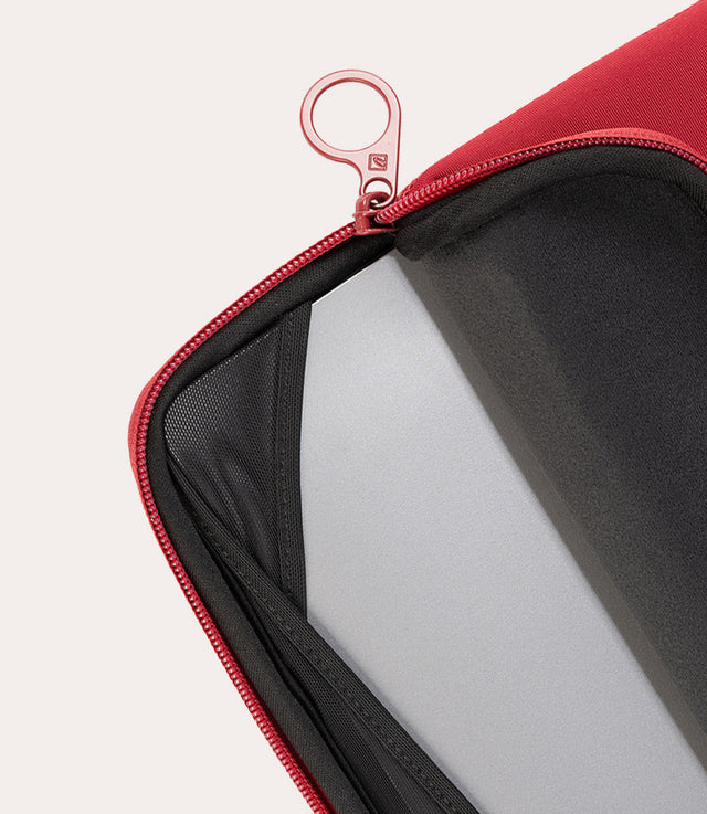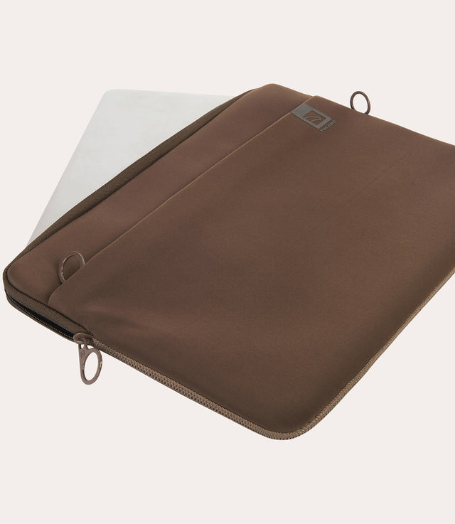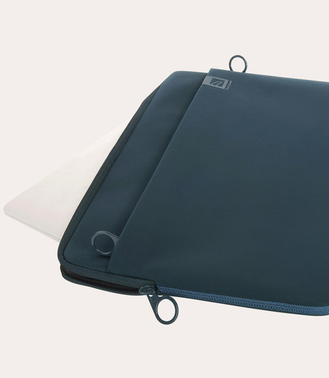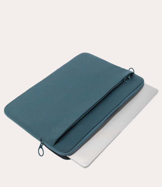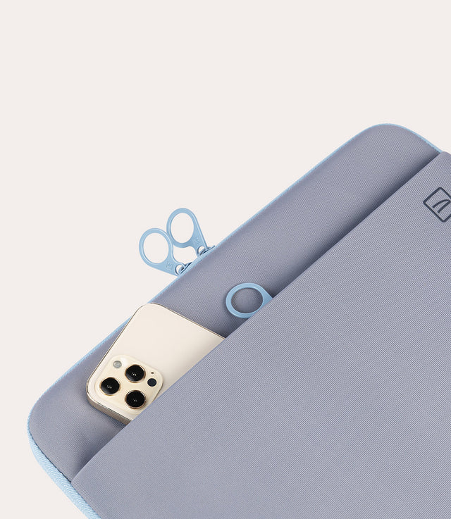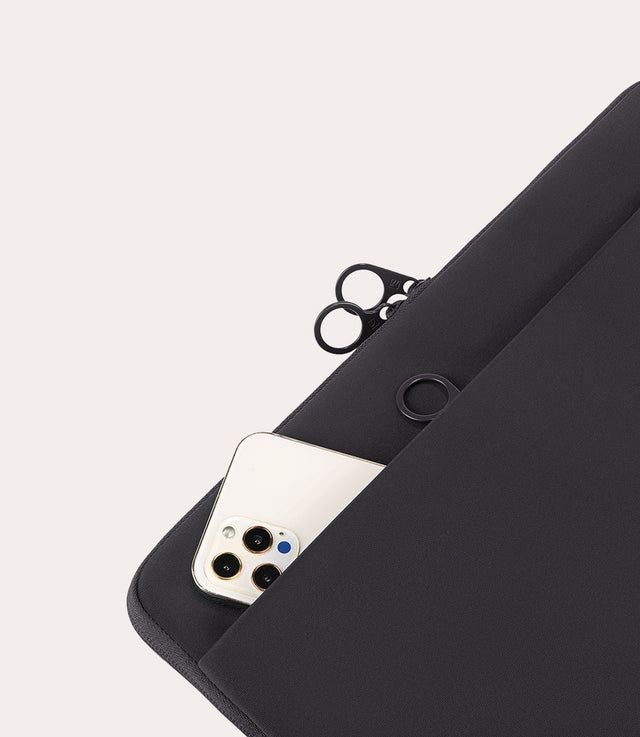 Étui pour MacBook et portables, en néoprène avec poche pour les accessoires. À l'intérieur de l'étui, le MacBook reste stable grâce au système Anti-Slip, composé d'une bande élastique en filet qui maintient l'ordinateur portable en sécurité et empêche les chutes accidentelles. La construction en néoprène de 4 mm d'épaisseur offre une protection supplémentaire contre les chocs. La poche avant offre beaucoup d'espace pour ranger des accessoires ou de petits objets.