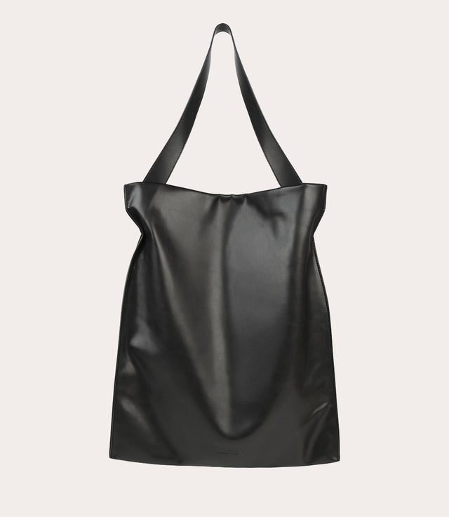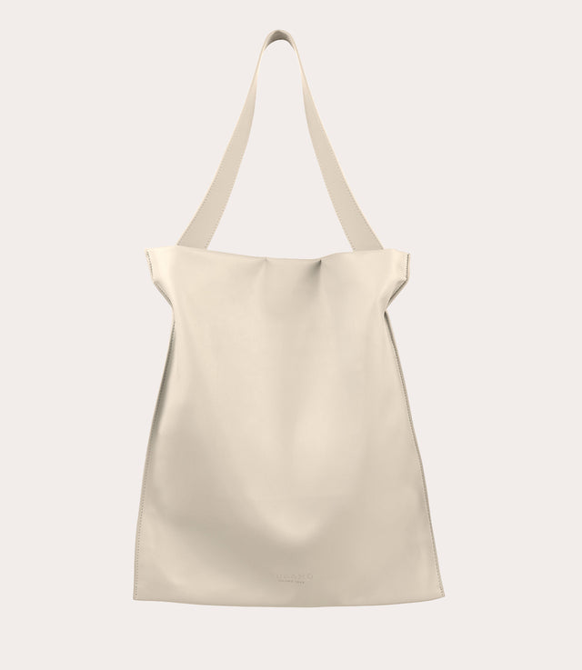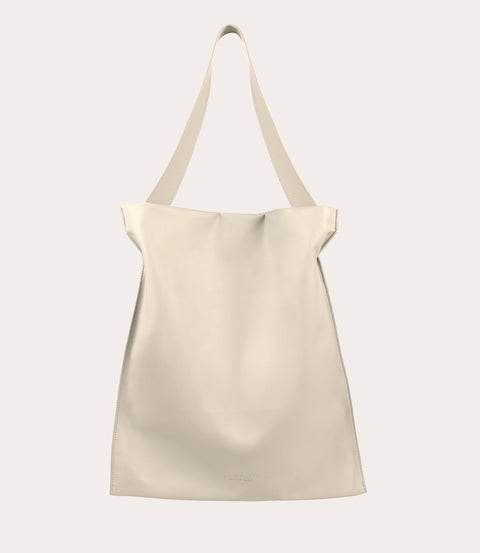 Sac à bandoulière en matériau souple d'aspect cuir fabriqué à partir de plastique recyclé. Le design minimal, les coutures apparentes et l'attache distinctive de la bandoulière rendent le sac léger et non structuré. Le sac Ginetta est doublé et comporte deux poches, dont l'une est zippée.