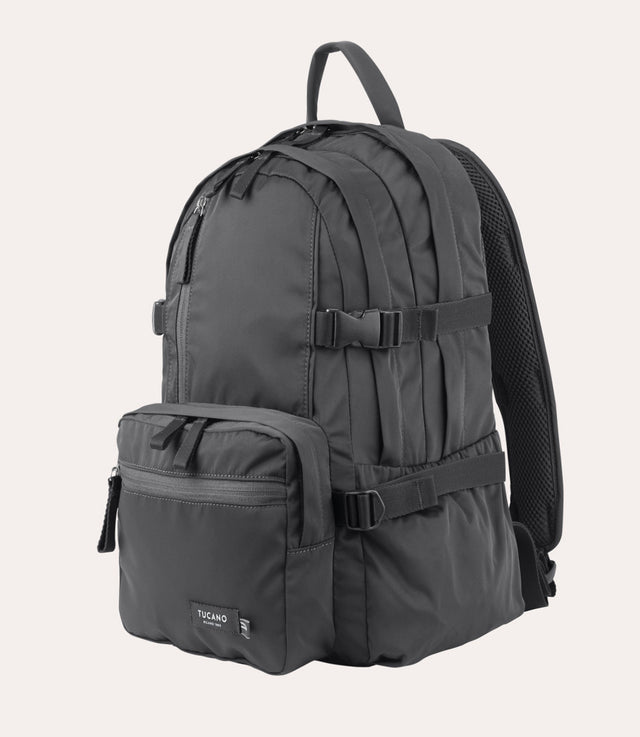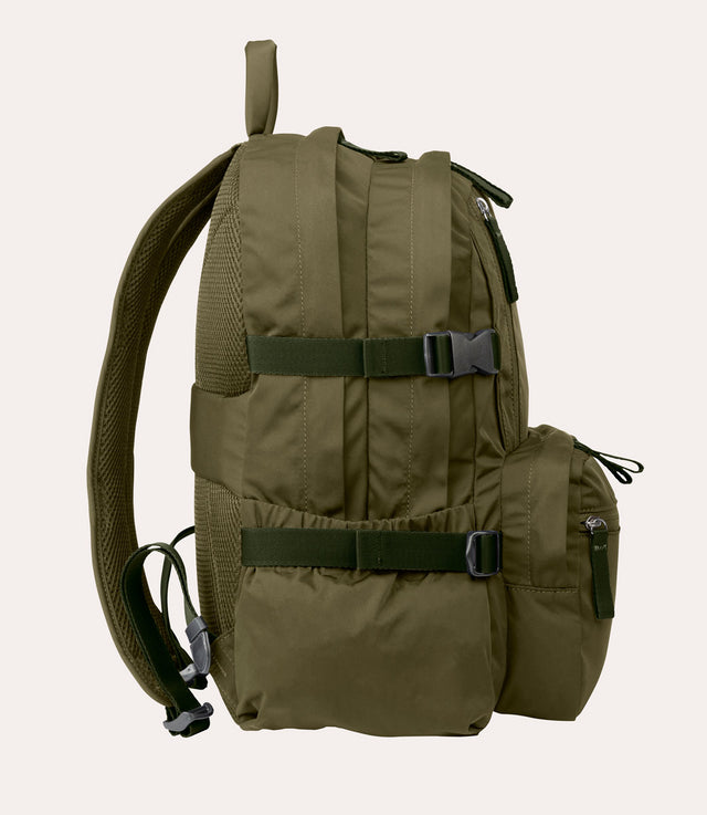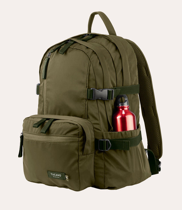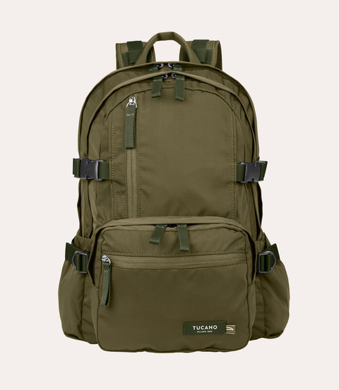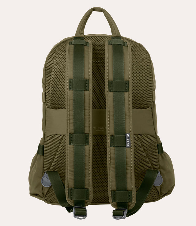 Sac à dos avec motif militaire en tissu fabriqué à partir de plastique recyclé. Le grand compartiment interne, réglable grâce à deux sangles latérales, comporte une poche pour ordinateur portable. Le style raffiné et l'excellente organisation des poches, dont trois à l'avant et une poche de sécurité à l'arrière, le rendent éclectique et adapté à toutes les occasions.