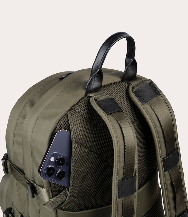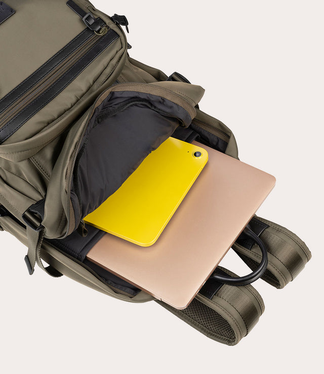 Ce sac à main professionnel en nylon recyclé et détails en cuir est doté d'un compartiment intérieur confortable et d'un espace de protection pour un ordinateur portable de 15,6 pouces ou un MacBook de 16 pouces. Doté d'une grande poche frontale zippée et d'une organisation pratique des poches, le sac Desert Premium peut également être porté à dos grâce à deux bandoulières rétractables situées sur le panneau arrière.