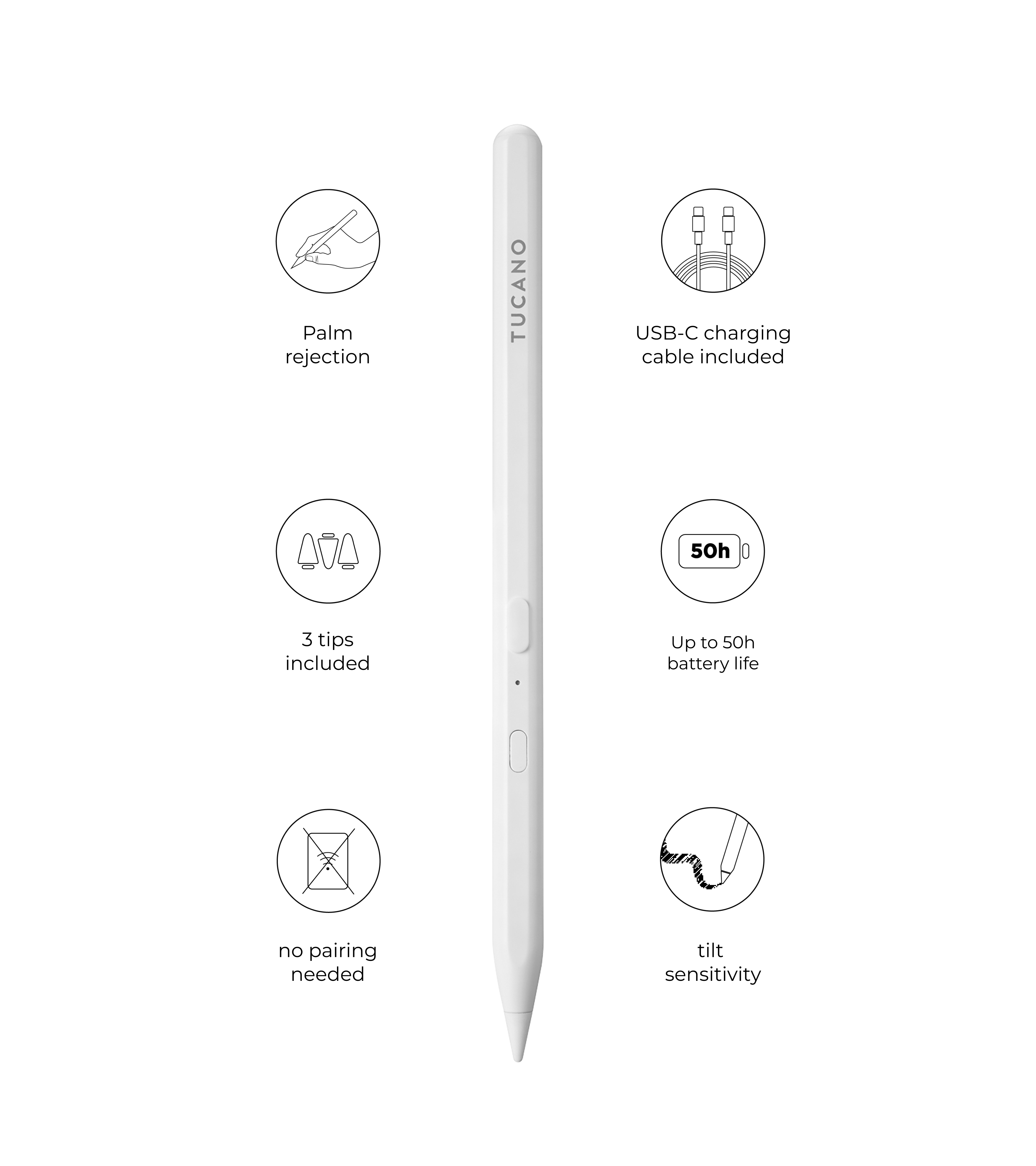 Tucano Pencil 3 trasforma l’iPad in uno strumento perfetto per la scuola: precisa e immediata, permette agli studenti di scrivere, disegnare e prendere appunti come su carta. Con una batteria che dura a lungo e la compatibilità estesa a tutti gli iPad dal 2018, è pensata per accompagnare senza interruzioni le giornate in classe.
