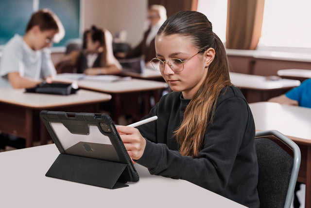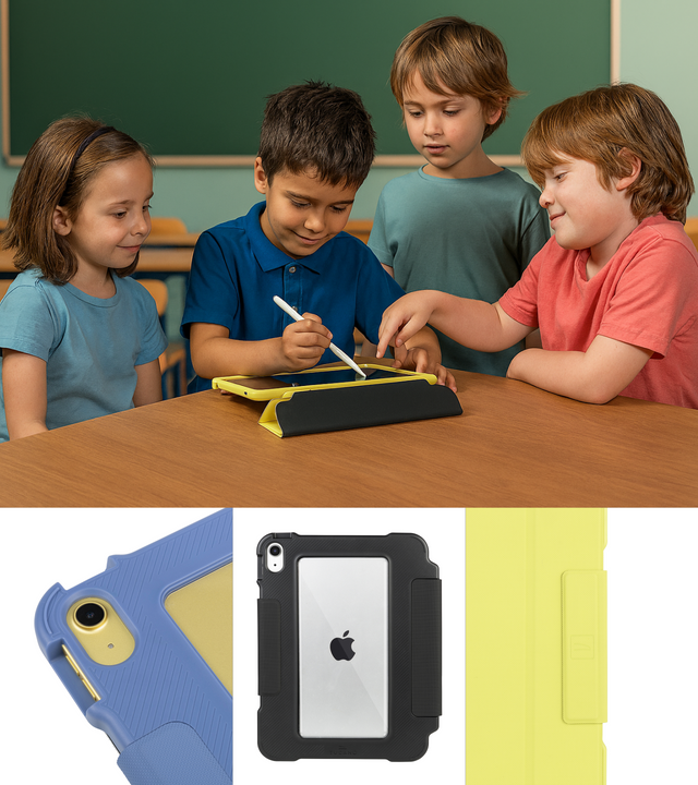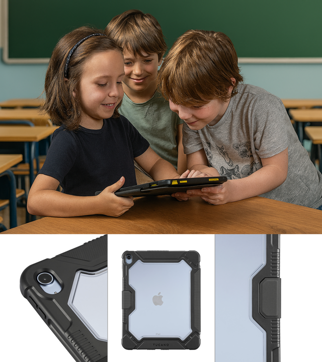- Identificazione immediata: retro trasparente per scrivere o applicare il nome degli studenti, così ogni iPad è sempre riconoscibile.