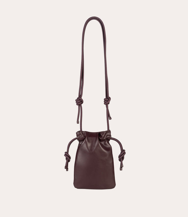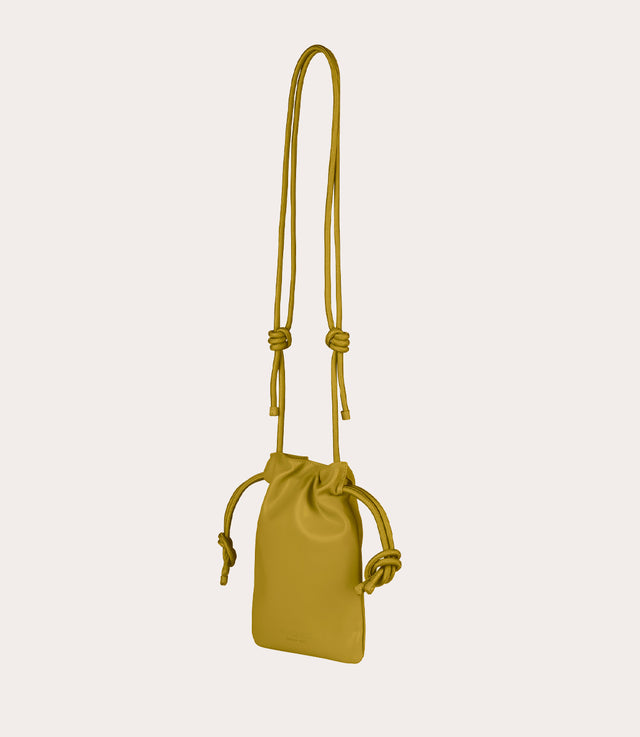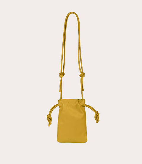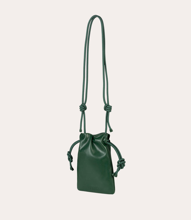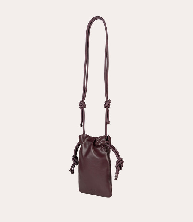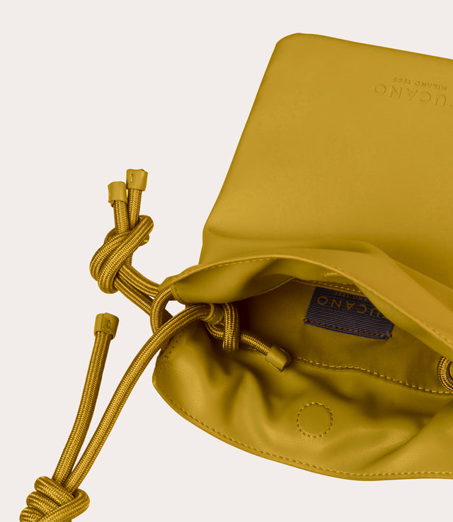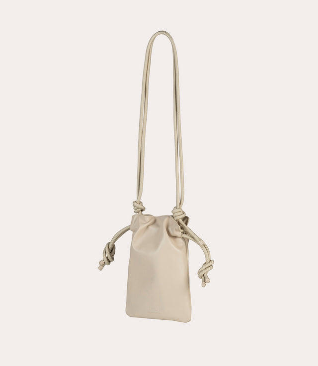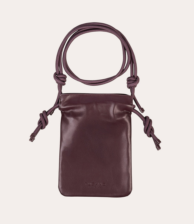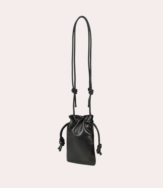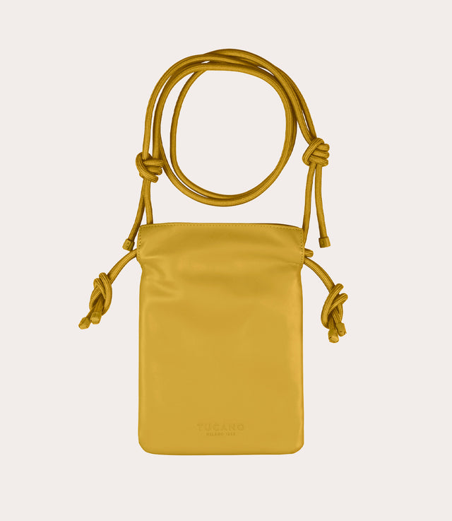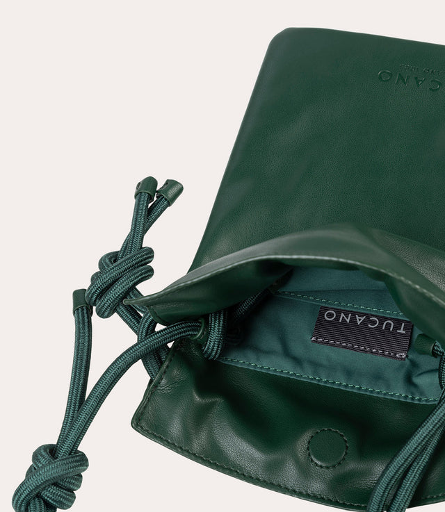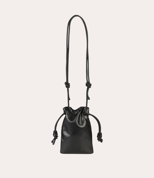 Mini bag con chiusura a strozzo in morbida pelle sintetica, ottenuta dalla plastica riciclata. Disegnata per contenere il celluare e altri accessori, la mini bag Nina ha il lato posteriore schermato da un tessuto antiradiation, in grado di proteggere dalle onde elettromagnetiche. Nina è dotata di cordino in tessuto regolabile. Chiusura con bottone magnetico.